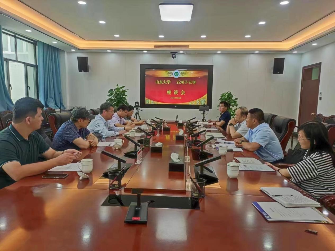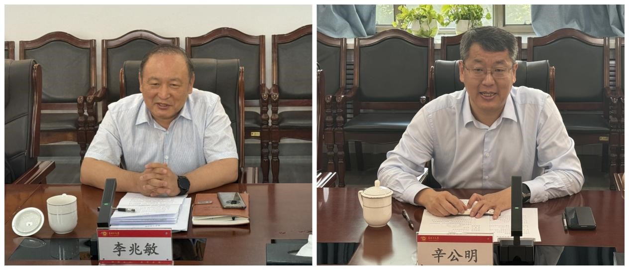 李兆敏对辛公明一行的到来表示热烈欢迎。他表示,山东大学拥有百年文化积淀,能源学科有着深厚的办学基础,石河子大学近年来在CO2捕集、储能和新能源学科建设等方面做出了很多努力,成立了兵团能源发展研究院,希望以此次交流为契机,在师资队伍建设、学科发展、人才培养、科研合作等方面与山东大学开展更深层次的交流合作。辛公明介绍了山东大学能源学科的发展情况,他表示,“双碳”战略为能源学科发展提供了新的发展契机,新疆是我国重要的能源产出地,与山东大学能源学科群有诸多的合作契合点,希望能与石河子大学共同为新疆的能源发展贡献力量。