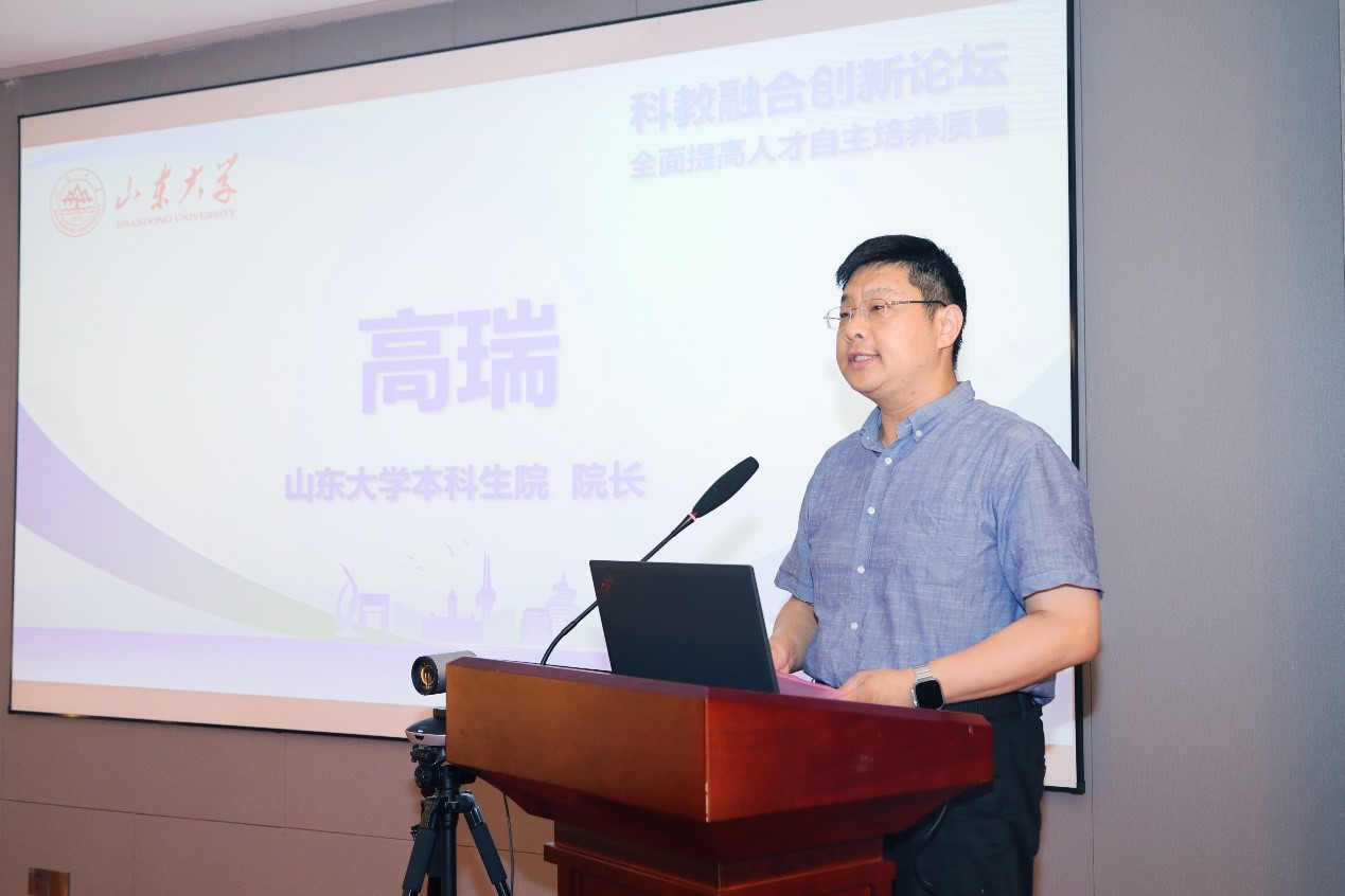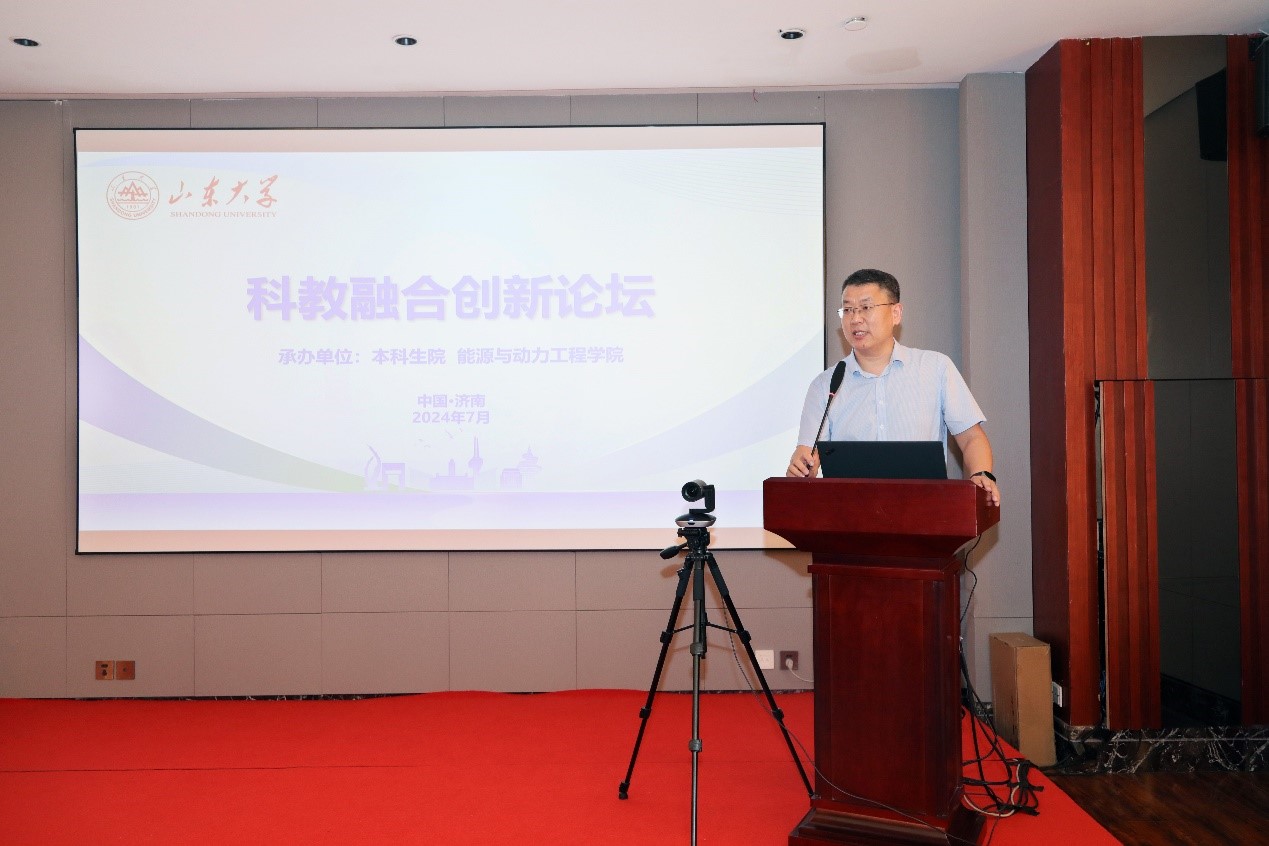高瑞致辞中表示,刚刚结束的学校第十五次党代会明确了新时代新征程山东大学的任务使命,锚定建设担当民族复兴大任的世界一流大学目标,持续创新融合发展体制机制,推进教育链、人才链与产业链、创新链深度融合。他指出,在“双碳”战略背景下,我国持续加快构建新型能源体系,山东大学将“低碳能源与环境”纳入十二个重点建设学科领域,在学生创新能力提升、专业素养培养等方面形成了很多特色和经验。他希望,通过举办这次科教融合创新论坛,进一步加强科教融合发展,推动新质生产力目标下能源领域的科技创新和人才培养,期待与参会兄弟高校,聚焦国家重大战略,勇担科技强国使命,加强高端人才培养,不断探索科创育人新模式,助力国家能源转型,为实现中国式现代化和民族复兴伟业作出新的更大贡献。