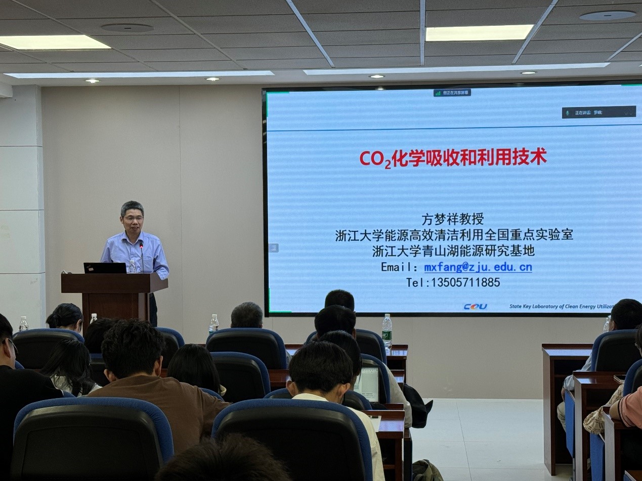 在“双碳”进程中,能源作为碳排放量最大的领域,其绿色低碳转型被视为关键。为迎接双碳背景下的绿色能源与资源利用方面的问题挑战,寻求优良的CCUS解决方案,需要加强校际合作,促进共同发展。王文龙首先带浙江大学一行参观了山东大学新泰工业技术研究院,向到访客人介绍了山东大学在绿色能源与资源领域的工作进展与技术示范情况。在学院专题报告会上,周劲松教授介绍了浙江大学热能工程研究所情况。热能所发展几十年,已经从教育部实验室转变为了国家重点实验室,拥有9个国家级基地,研究涉及化石能源、新能源、固废资源化利用和减污降碳等多个方向,承担国家重大任务,服务于国家和地方,与30多个大中型企业达成战略合作关系,产出了大量的成果。周劲松教授表示:“未来更要持续创新发展,打造杭州硅谷,更好地为国家和地方服务”。之后,方梦祥教授以“CO2化学吸收和利用技术”为题,全面系统地讲述了二氧化碳的吸收、捕集和利用技术。方梦祥教授指出,碳中和将引起能源技术革命,形成全新的产业链,CCUS能够为化石能源低碳排放提供保证,大幅度降低CO2捕集利用能耗和成本是未来发展的方向,学术界和企业界应当联合起来,共同合作推进技术产业化。报告会最后,与会师生热情提问,向浙江大学教授请教问题、交流心得,本次报告会加深了大家对CCUS的理解,激发了大家在双碳背景下研究CO2捕集与利用技术、服务国家重大战略需求的热情。