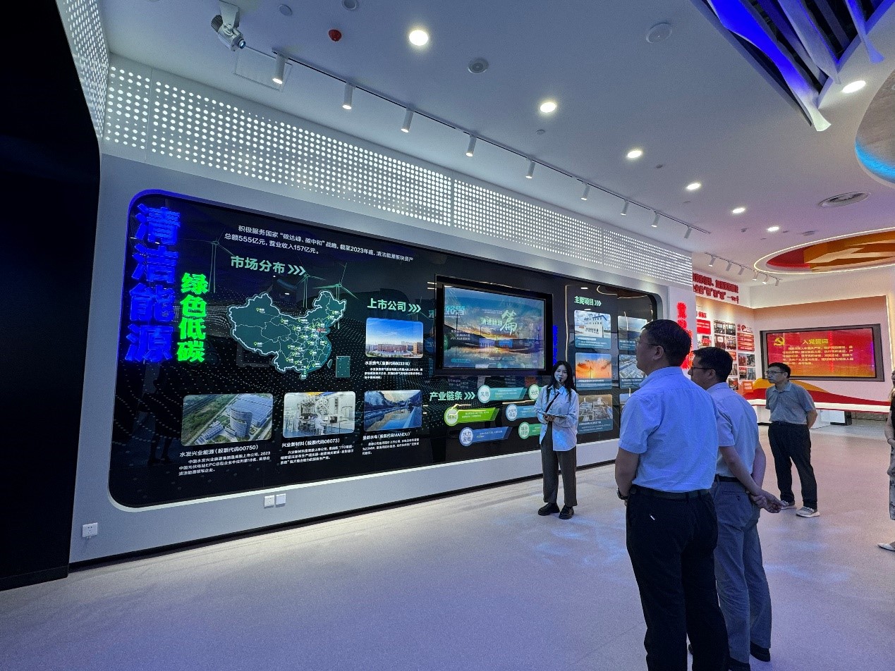 在座谈交流前,辛公明等一行参观了水发集团改革发展展厅,从水利、农业和清洁能源全方面了解水发集团发展历程。