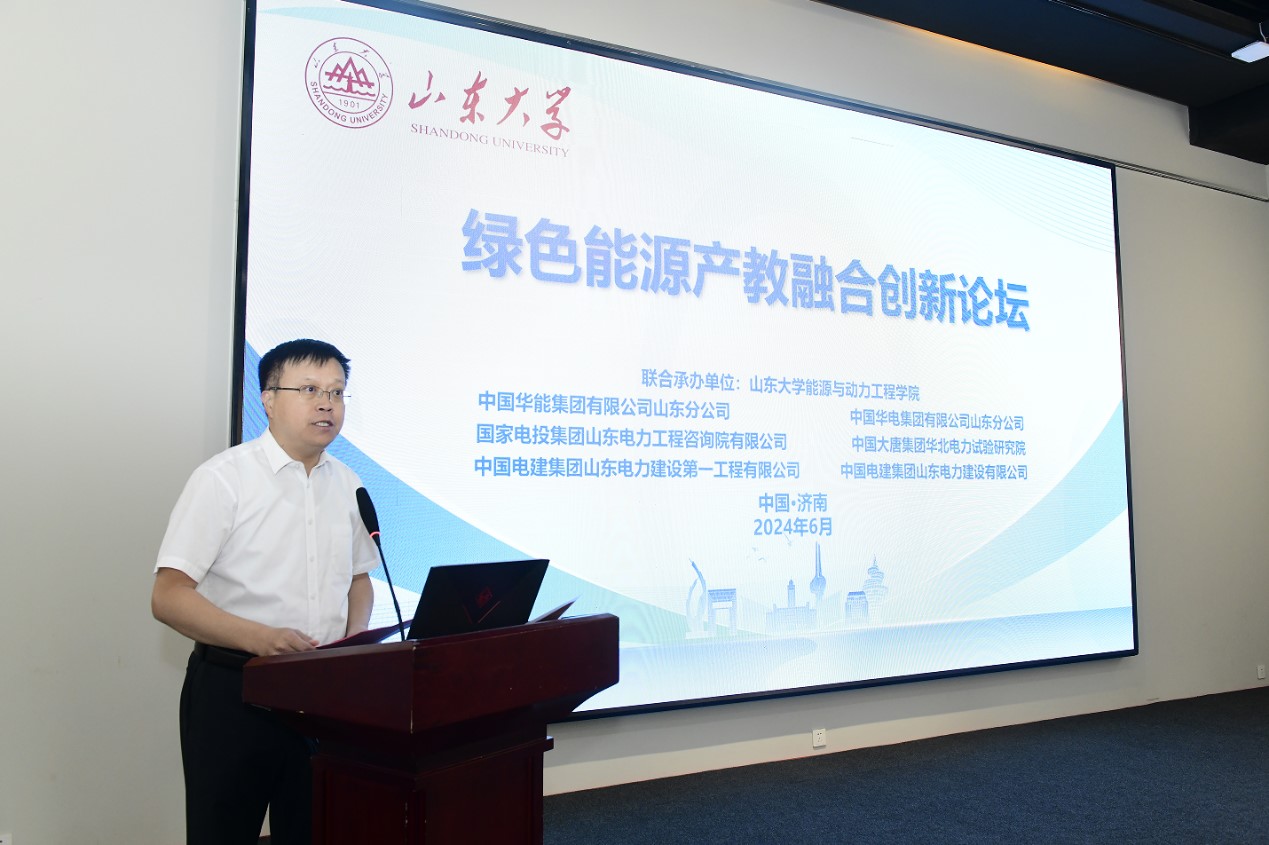 6月30日,9999js金沙老品牌举办庆祝建院40周年系列活动——绿色能源产教融合创新论坛。中国华能集团有限公司山东分公司副总工程师兼生产部主任李杰,中国华电集团有限公司山东分公司党委委员、副总经理刘永,国家电投集团山东电力工程咨询院有限公司党委委员、副总经理杨朋朋,中国大唐集团华北电力试验研究院副院长朱宪然,中国电建集团山东电力建设第一工程有限公司科技工程部副主任杜传国,中国电建集团山东电力建设有限公司工程科技部经理李辉应邀出席论坛,山东大学党委副书记王君松出席开幕式并致辞,9999js金沙老品牌党委书记辛公明主持论坛开幕式。