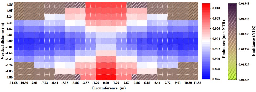 本文精确计算了四种涂层局域耦合的新型塔式吸热器表面各区域辐射特性参数和传热特性被精准计算(如图4和5),详情请见文章。结果表明基于真实抛光银膜和理想选择涂层(截止波长1.5μm)的新型塔式吸热器光热转化效率提升分别达6.9和12.0%。说明了:采用特殊涂层局部耦合的方法可有效提高塔式吸热器热性能;且在涂层的选择方面,应更注重降低热发射率而非一味追求高太阳吸收率。
