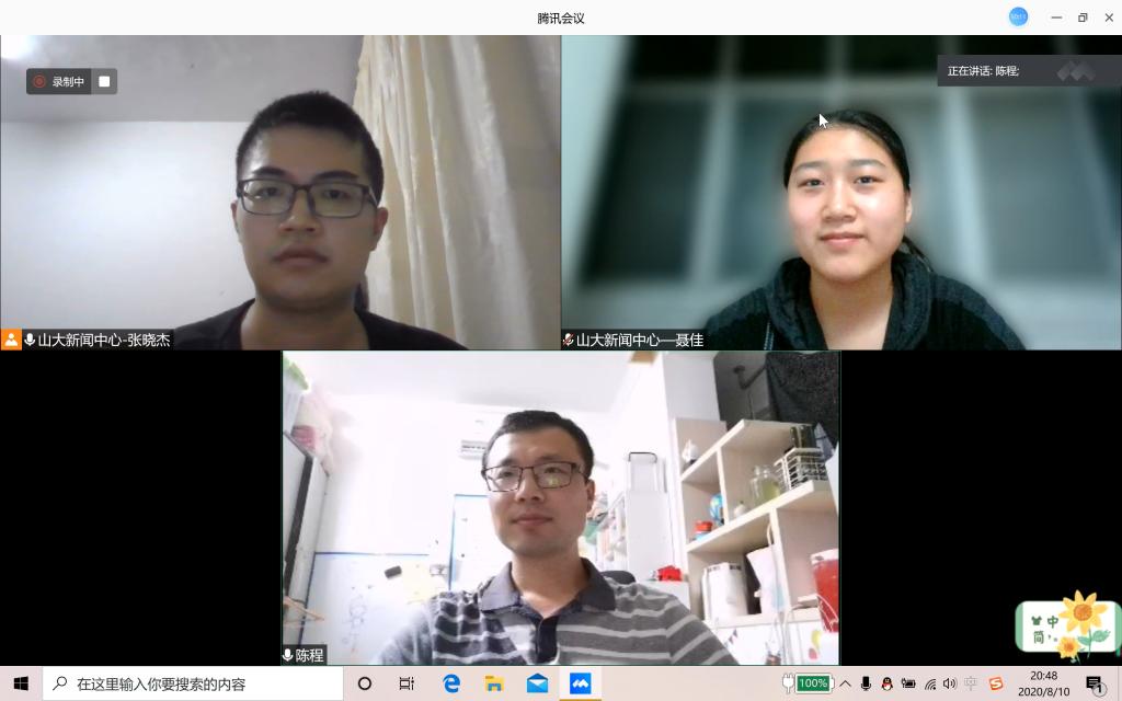 在采访的最后,陈程为即将入学的2020届新生送来了祝福和寄语。“每个人都有迷茫期,迷茫的时候,多看优秀的师兄师姐,多读书,多看纪录片。”“大学是一个充满机会和挑战的地方,也希望你们尽快地从高中的思维方式中转变过来,过一个充满挑战、充满激情,对自己有意义的大学四年。”