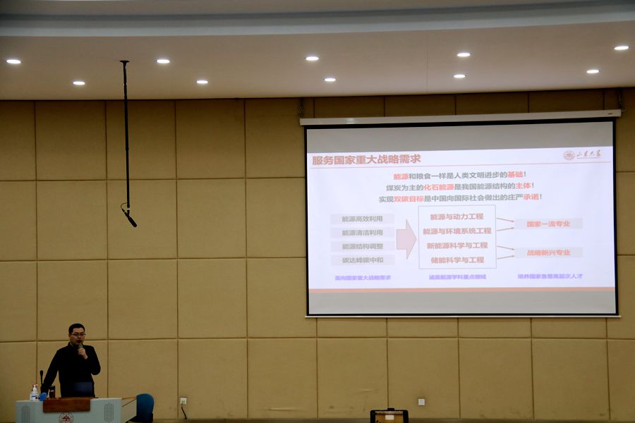 首先,何老师从中国能源现状的大背景引入主题,详细介绍学院先进能源与智能系统专业,包括其研究方向、标志性成果、学生培养特点及就业方向。紧接着他介绍了与专业有关的科技前沿知识,以山大-和同信息合作的低碳智慧供热技术研发中心为案例,详细介绍光伏发电提质增效关键技术与空气源热泵提质增效关键技术的原理,从而引出光伏-空气源热泵互补供能系统的设计思路及其应用优势。最后,何老师建议同学们在生涯规划中,要树立远大理想,脚踏实地一步步向前,并简述了学院的考研现状,鼓励同学们多多阅读科技文献,学习论文写作的格式,积极参与科创活动,积累科创经验。