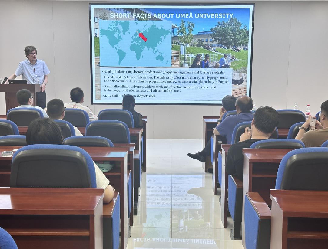 Thomas Olofsson教授首先介绍了瑞典于默奥大学的教学环境、学科设置,强调了其学科设置的多样性和灵活性,并详细说明了学位申请的流程和要求,为有意向前往该校深造的学生提供了宝贵的信息。