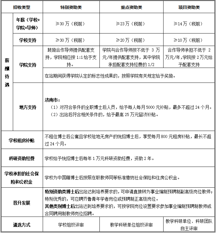 统招博士后实行年薪制,按招收类别分别提供相应薪酬待遇。