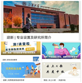 线上教育,做好铺垫。在疫情防控的特殊时期,本次迎新工作引起了从学院上下的高度重视,在学院党委的组织规划下,院学生会成员开展了一系列线上活动,例如成立朋辈导师新生群,为新生答疑解惑,在暑假共计有69位品学兼优的朋辈导师投身线上迎新,做到点对点解决新生们的疑惑;线上教育活动还向新生介绍了学院的榜样模范,提示新生进入大学的物资准备,对新生进行了涉及身心健康、财产安全和人际关系的入学教育;线上举办的“云上K歌 共度中秋”活动,让新生站上了一个展示自我的舞台,有效拉近了新生间的距离,对新生人际关系的建立有着良好的影响。“SDU微言动听”公众号是另一线上迎新的“主战场”,暑假期间21篇迎新推文被发布,全面地介绍了学院的历史及现况、专业的分类和前景。学院通过线上迎新活动帮助新生们提前获取大学信息、形成专业认同、制定生涯规划。