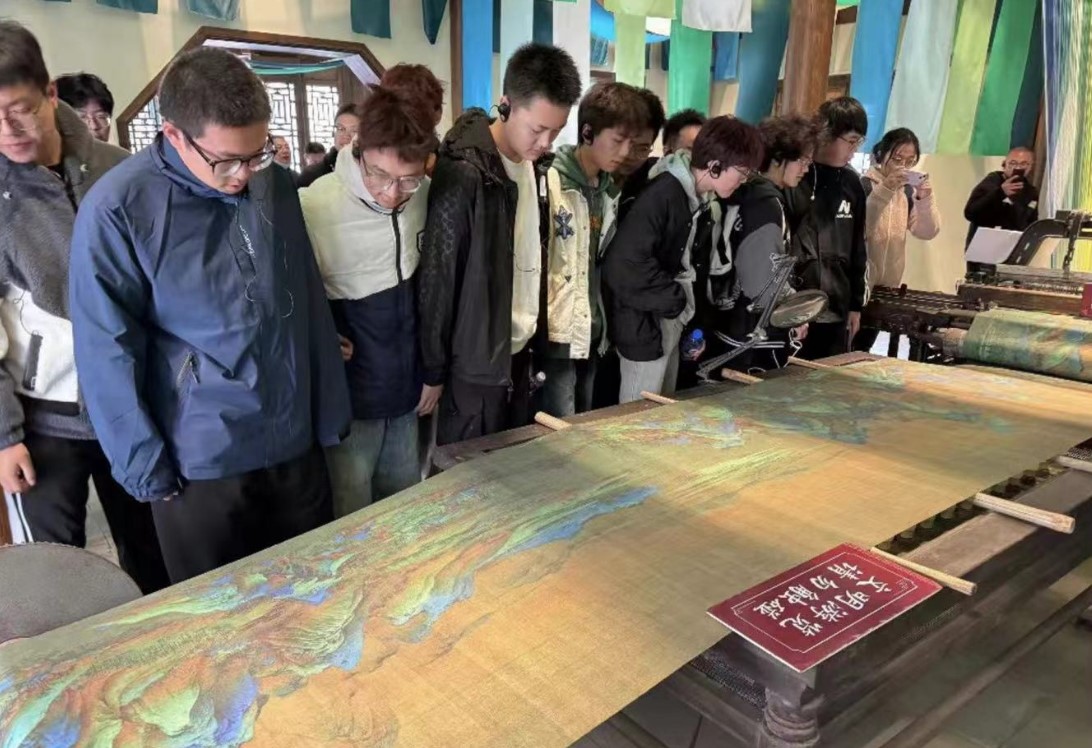 在布坊中,同学们不仅了解到了过去布料的制作过程,还欣赏了手工织就的《千里江山图》,通过纺织行业的变化感受其中蕴含的历史文化。