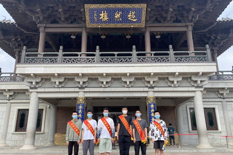 超然楼的志愿者们在工作人员的带领下,首先领取了志愿绶带,熟悉了超然楼的内部结构并接到了在超然楼入口处引导游客的任务。随后,在工作人员的指导下,超然楼的志愿者们分为了两组,每组三人,每一个半小时轮换一次。每组的三个志愿者分别负责为游客介绍门票收费标准、登记核实游客信息和为游客们测量体温。志愿者们各司其职、认真负责,为来超然楼参观的游客们提供了便利的服务。